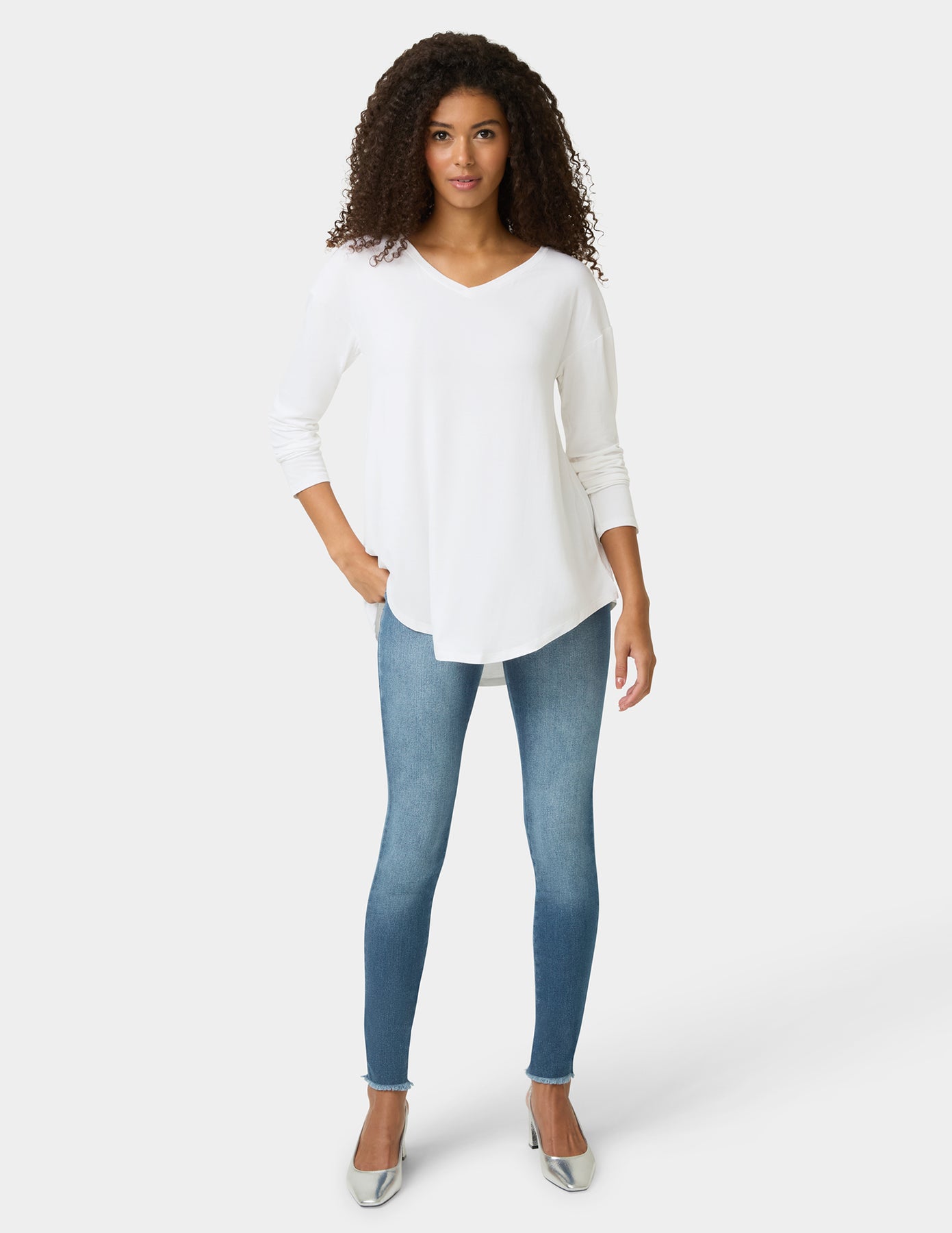 Denim with an edge! These on-trend leggings give you all the comfort and moveability of cotton leggings and edgy street style with frayed hem detailing. Features a 29.5" inseam.